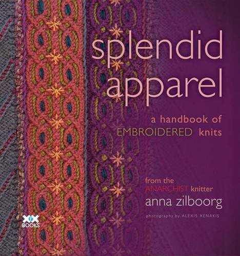 25 of 25 people found the following review helpful. Eighteen Special-Occasion Garment Designs; Knitter's Reference for Adding Embroidered Embellishments to Knits By Lynne E. What an amazing book! Well-known designer and teacher Anna Zilboorg, whose work is always an inspiration to knitters, has simply outdone herself with SPLENDID APPAREL: A HANDBOOK OF EMBROIDERED KNITS! The book is a pattern collection (18 drop-dead gorgeous cardigans, vests, and pullovers, to embroider or not embroider, whichever the knitter prefers); a knitting stitch collection (charted and written-out instructions for selected ribbing, cable, offset, lace, and traveling stitch patterns suitable for embroidery--shown in photographed, embellished swatches), and an embroidery stitch collection (11 stitches appropriate for embroidery on hand-knitted fabrics, most of which aren't commonly used).SPLENDID APPAREL absolutely belongs on every serious knitter's reference shelf, both for the stunning embellishment ideas, and for the thoughtful explanations about how the right embroidery stitches, added in the right places, can bring a knitted fabric totally alive. Zilboorg recognizes that adding embroidery to an already complex knitted fabric (one incorporating cable, lace, or traveling stitches) is a LOT of extra work, so she discusses how to use minimal amounts of embroidery to good effect, and gives tips on how to knit her beautiful garment designs to best effect WITHOUT embroidery.For example, in the "Marsh Mallow" lace cardigan pattern, Zilboorg observes, "A little embroidery makes a big difference in how this pattern 'reads'. Without outlining the stitch where the wings come together, the wings fly up. With the outline, even in a very similar color, the wings swoop down. . . . if you want to embroider, you should use the vertical double decrease in the center between the wings. If you do not want to embroider, it would be better to use the left-slanting double decrease throughout. This helps make those wings flow in a semi-circle . . . ."As you can see from the above quotation, SPLENDID APPAREL is a book intended for advanced knitters--although anyone (including adventurous intermediates) who can knit the underlying cable or lace fabrics should be able to knit and embroider the garments. Probably knitters should have some prior experience with embroidery, because embroidery on knitted fabric is always tricky--you need to get the tension right, so that the added embroidery doesn't pull on the knitted stitches or make the fabric stiff and unyielding.The embroidery stitches used are: Algerian eye, back stitch, buttonhole circle, cable chain, chain stitch, cross-stitch flower, fly stitch, Palestrina knot, stem stitch, Smyrna knot, and tied-down cross. The book cover illustrates some of these stitches as used in the Trillium design.Of necessity, the designs call for relatively fine yarns (mostly DK weight; some medium worsted), and for US 5 or US 6 needles. (Fancy cable and lace stitches take a lot of rows, so thick yarns would create huge garments that no one could wear.) This means that the designs require both time and dedication to knit and embroider.If I had unlimited time, I would make and embroider nearly every garment included in this book! Some of the designs are a little too elaborate for my taste, but they are all beautiful and inspirational. They are designs for garments that, when completed, will be cherished and worn mostly on special occasions. My favorite, at this moment, is the fairly simple Foxglove, a cardigan with an allover pattern of textured diamonds that have an Algerian eye embroidered in each diamond's center.The designs are as follows: LOBELIA (cardigan; Palestrina knots in spaces between cable crossing); POPPY (cardigan; fly-stitches in purled columns, Palestrina knots inside lattice shapes); ONIONS (cardigan, shown on book's back cover; stem stitch inside traveling stitch curves); IRIS (cardigan; fly stitch over purled columns, Palestrina knots between cable crossings); MILKWEED (cardigan; Palestrina knots between cable crossings, Algerian eye in center of diamonds); PRICKLY PEAR (pullover; stem stitch over knitted columns, Palestrina knot between clusters); WINTERGREEN (cardigan; stem stitch in centers of knitted curves, Palestrina knots in plain rows between cables); FOXGLOVE (cardigan; Algerian eye in centers of diamonds); BITTERSWEET (cardigan; stem stitch in center of cable ribs, half Algerian eye in half circles formed by cables); DODDER (vest; Palestrina knots over YO pairs, stem stitch in centers of knit stitches outlining YOs); MOUNTAIN LAUREL (cardigan; Palestrina knots in lace columns); MORNING GLORY (vest; detached chain stitch over double wraps, stem stitch over purl stitches between twisted stitches, tied straight stitches on bobbles); MARSH MALLOW (cardigan; detached chain stitch at top of purl sections and in cuffs, chain stitch in center decrease line and in cuffs); SWEET WILLIAM (cardigan; cable chain over cable crosses, fly stitch over purled column, Palestrina knot at points of diamonds, stem stitch in center of decrease curves); BUTTERCUP (vest; Palestrina knot below double decreases, double strand runs through decrease columns); RHODODENDRON (v-neck pullover; stem stitch on purl curves, fly stitch outlining swirls); TRILLIUM (vest; Palestrina knots in diamonds, double cross variation in center diamond, back stitch in ovals, stem stitch in purl columns); KNOTWEED (cardigan; stem stitch outlining hexagons and inner diamond and between ribs, cable chain through center of diamond).As always, this book published by XRX Books (Knitter's Magazine), includes many, many gorgeous full-color photographs by the superb knitting photographer Alexis Xenakis.